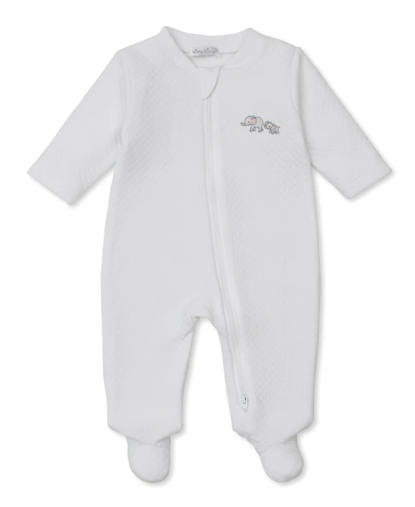 / Jacquard White Footie w/ Gray Embroidered Elephants