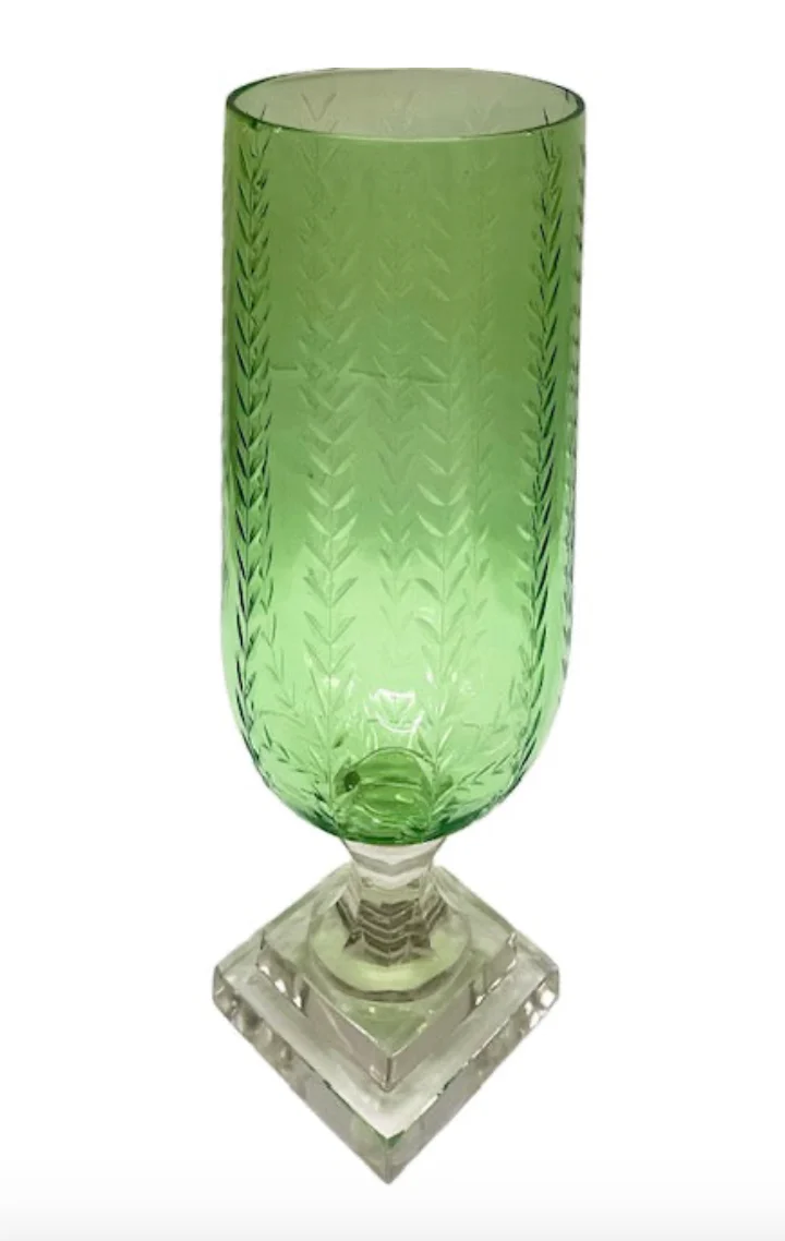 / Pair of Light Green Vine Etched Hurricanes